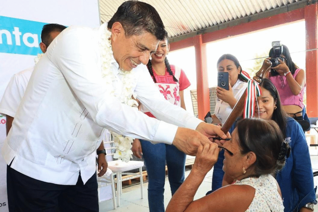 • En esta gira de trabajo, la Presidenta Honoraria del organismo estatal y el Gobernador entregaron aparatos funcionales, lentes de vista cansada y dotaron de material al Club de Adultos Mayores de Santa Catarina Mechoacán Región Costa. 27 de septiembre de 2025. En un acto de justicia social, el Gobierno de Oaxaca a través del