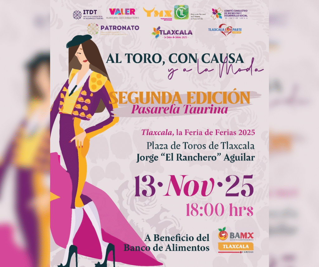 Tlaxcala, Tlax., 7 de octubre de 2025.– En el marco de la Feria de Tlaxcala, fue presentada la segunda edición del evento “Al toro, con causa y a la moda”, una pasarela con temática taurina que busca fusionar la moda, la cultura y el altruismo en un solo escenario. La presentación tuvo lugar en el
